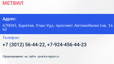 МЕТВИЛ по адресу 670045, Бурятия, Улан-Удэ, проспект Автомобилистов, 16 к2 в дальнейшем Организация, размещена в следующих категориях:
