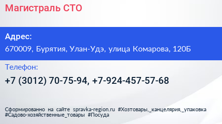 Магистраль, СТО по адресу 670009, Бурятия, Улан-Удэ, улица Комарова, 120Б в дальнейшем Организация, размещена в следующих категориях:
