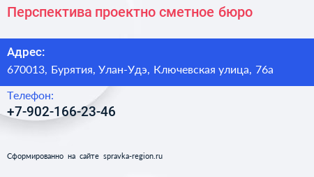 Перспектива, проектно-сметное бюро по адресу 670013, Бурятия, Улан-Удэ, Ключевская улица, 76а в дальнейшем Организация, размещена в следующих категориях: