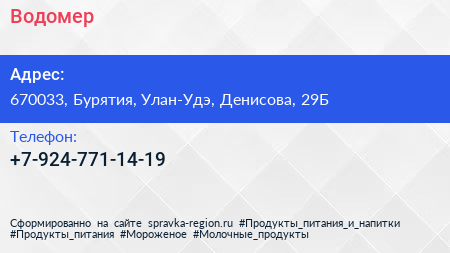 Водомер по адресу 670033, Бурятия, Улан-Удэ, Денисова, 29Б в дальнейшем Организация, размещена в следующих категориях: