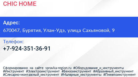 CHIC HOME по адресу 670047, Бурятия, Улан-Удэ, улица Сахьяновой, 9 в дальнейшем Организация, размещена в следующих категориях: