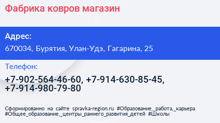 Фабрика ковров, магазин по адресу 670034, Бурятия, Улан-Удэ, Гагарина, 25 в дальнейшем Организация, размещена в следующих категориях: