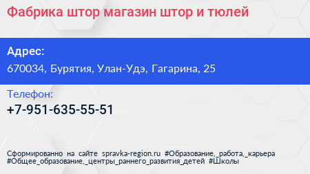Фабрика штор, магазин штор и тюлей по адресу 670034, Бурятия, Улан-Удэ, Гагарина, 25 в дальнейшем Организация, размещена в следующих категориях: