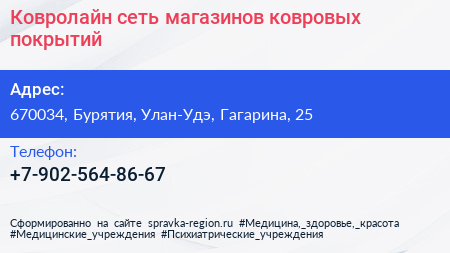 Ковролайн, сеть магазинов ковровых покрытий по адресу 670034, Бурятия, Улан-Удэ, Гагарина, 25 в дальнейшем Организация, размещена в следующих категориях: