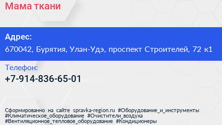 Мама ткани по адресу 670042, Бурятия, Улан-Удэ, проспект Строителей, 72 к1 в дальнейшем Организация, размещена в следующих категориях: