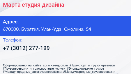 Марта, студия дизайна по адресу 670000, Бурятия, Улан-Удэ, Смолина, 54 в дальнейшем Организация, размещена в следующих категориях: