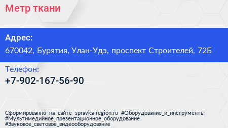 Метр ткани по адресу 670042, Бурятия, Улан-Удэ, проспект Строителей, 72Б в дальнейшем Организация, размещена в следующих категориях: