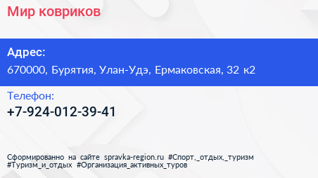 Мир ковриков по адресу 670000, Бурятия, Улан-Удэ, Ермаковская, 32 к2 в дальнейшем Организация, размещена в следующих категориях: