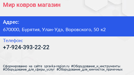 Мир ковров, магазин по адресу 670000, Бурятия, Улан-Удэ, Воровского, 50 к2 в дальнейшем Организация, размещена в следующих категориях: