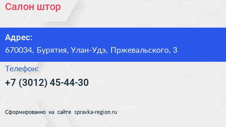 Салон штор по адресу 670034, Бурятия, Улан-Удэ, Пржевальского, 3 в дальнейшем Организация, размещена в следующих категориях:
