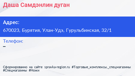 Даша Самдэнлин, дуган по адресу 670023, Бурятия, Улан-Удэ, Гурульбинская, 32/1 в дальнейшем Организация, размещена в следующих категориях: