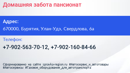 Домашняя забота, пансионат по адресу 670000, Бурятия, Улан-Удэ, Свердлова, 6а в дальнейшем Организация, размещена в следующих категориях: