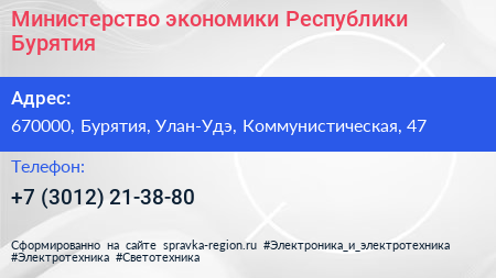 Министерство экономики Республики Бурятия по адресу 670000, Бурятия, Улан-Удэ, Коммунистическая, 47 в дальнейшем Организация, размещена в следующих категориях: