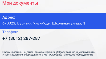 Мои документы по адресу 670023, Бурятия, Улан-Удэ, Школьная улица, 1 в дальнейшем Организация, размещена в следующих категориях: