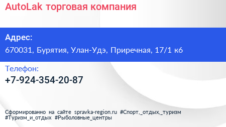 AutoLak, торговая компания по адресу 670031, Бурятия, Улан-Удэ, Приречная, 17/1 к6 в дальнейшем Организация, размещена в следующих категориях: