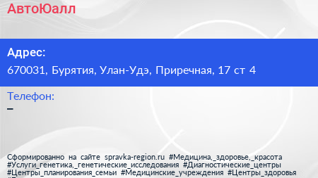 АвтоЮалл по адресу 670031, Бурятия, Улан-Удэ, Приречная, 17 ст 4 в дальнейшем Организация, размещена в следующих категориях: