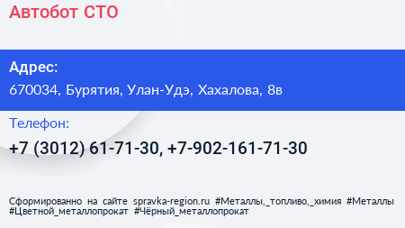 Автобот, СТО по адресу 670034, Бурятия, Улан-Удэ, Хахалова, 8в в дальнейшем Организация, размещена в следующих категориях: