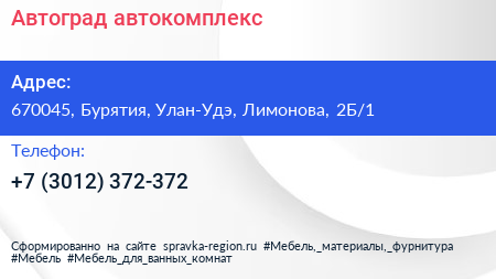 Автоград, автокомплекс по адресу 670045, Бурятия, Улан-Удэ, Лимонова, 2Б/1 в дальнейшем Организация, размещена в следующих категориях: