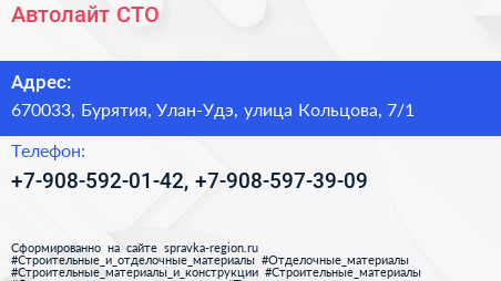 Автолайт, СТО по адресу 670033, Бурятия, Улан-Удэ, улица Кольцова, 7/1 в дальнейшем Организация, размещена в следующих категориях: