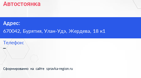 Автостоянка по адресу 670042, Бурятия, Улан-Удэ, Жердева, 18 к1 в дальнейшем Организация, размещена в следующих категориях: