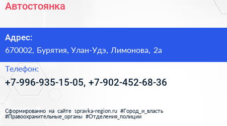 Адрес: Бурятия, Улан-Удэ, Борсоева, 105