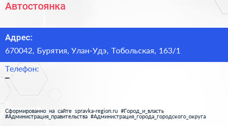 Автостоянка по адресу 670042, Бурятия, Улан-Удэ, Тобольская, 163/1 в дальнейшем Организация, размещена в следующих категориях: