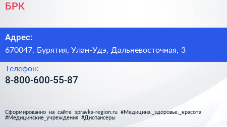 БРК по адресу 670047, Бурятия, Улан-Удэ, Дальневосточная, 3 в дальнейшем Организация, размещена в следующих категориях:
