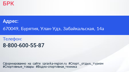БРК по адресу 670049, Бурятия, Улан-Удэ, Забайкальская, 14а в дальнейшем Организация, размещена в следующих категориях: