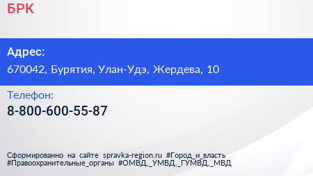 БРК по адресу 670042, Бурятия, Улан-Удэ, Жердева, 10 в дальнейшем Организация, размещена в следующих категориях: