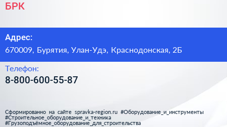 БРК по адресу 670009, Бурятия, Улан-Удэ, Краснодонская, 2Б в дальнейшем Организация, размещена в следующих категориях:
