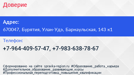 Доверие по адресу 670047, Бурятия, Улан-Удэ, Барнаульская, 143 к1 в дальнейшем Организация, размещена в следующих категориях: