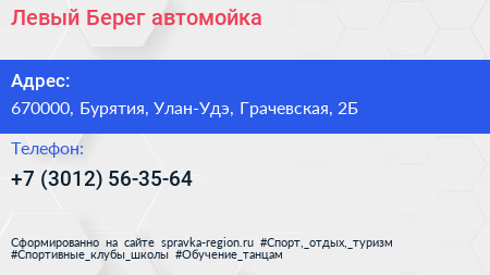 Левый Берег, автомойка по адресу 670000, Бурятия, Улан-Удэ, Грачевская, 2Б в дальнейшем Организация, размещена в следующих категориях: