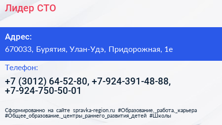 Лидер, СТО по адресу 670033, Бурятия, Улан-Удэ, Придорожная, 1е в дальнейшем Организация, размещена в следующих категориях: