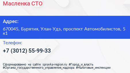 Масленка, СТО по адресу 670045, Бурятия, Улан-Удэ, проспект Автомобилистов, 5 к1 в дальнейшем Организация, размещена в следующих категориях: