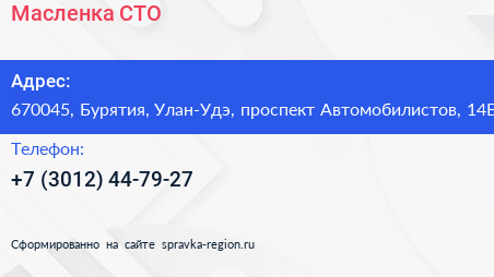 Масленка, СТО по адресу 670045, Бурятия, Улан-Удэ, проспект Автомобилистов, 14Б в дальнейшем Организация, размещена в следующих категориях: