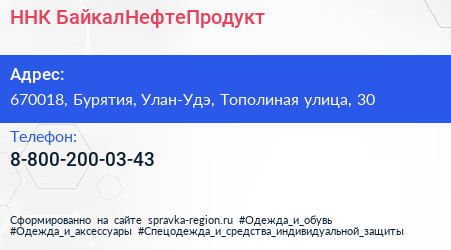ННК-БайкалНефтеПродукт по адресу 670018, Бурятия, Улан-Удэ, Тополиная улица, 30 в дальнейшем Организация, размещена в следующих категориях: