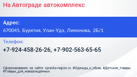 На Автограде, автокомплекс по адресу 670045, Бурятия, Улан-Удэ, Лимонова, 2Б/1 в дальнейшем Организация, размещена в следующих категориях: