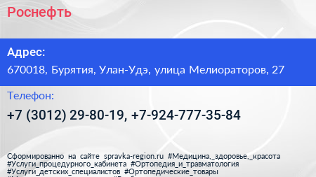 Роснефть по адресу 670018, Бурятия, Улан-Удэ, улица Мелиораторов, 27 в дальнейшем Организация, размещена в следующих категориях: