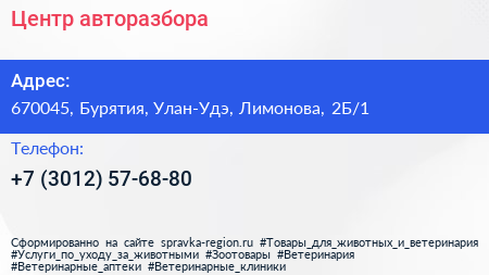 Центр авторазбора по адресу 670045, Бурятия, Улан-Удэ, Лимонова, 2Б/1 в дальнейшем Организация, размещена в следующих категориях:
