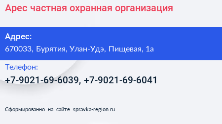 Арес, частная охранная организация по адресу 670033, Бурятия, Улан-Удэ, Пищевая, 1а в дальнейшем Организация, размещена в следующих категориях:
