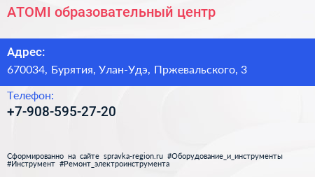 ATOMI, образовательный центр по адресу 670034, Бурятия, Улан-Удэ, Пржевальского, 3 в дальнейшем Организация, размещена в следующих категориях: