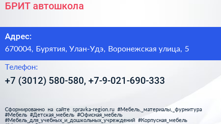 БРИТ, автошкола по адресу 670004, Бурятия, Улан-Удэ, Воронежская улица, 5 в дальнейшем Организация, размещена в следующих категориях:
