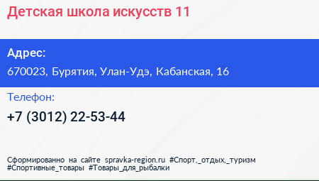 Детская школа искусств №11 по адресу 670023, Бурятия, Улан-Удэ, Кабанская, 16 в дальнейшем Организация, размещена в следующих категориях:
