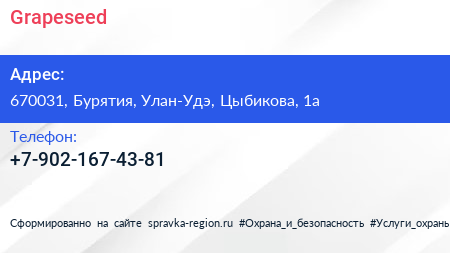 Grapeseed по адресу 670031, Бурятия, Улан-Удэ, Цыбикова, 1а в дальнейшем Организация, размещена в следующих категориях: