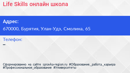 Life Skills, онлайн-школа по адресу 670000, Бурятия, Улан-Удэ, Смолина, 65 в дальнейшем Организация, размещена в следующих категориях: