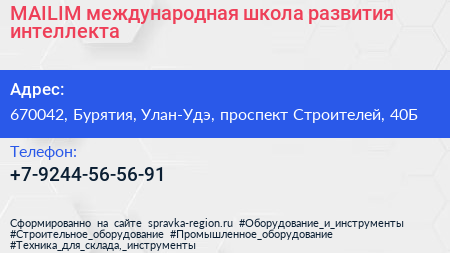 MAILIM, международная школа развития интеллекта по адресу 670042, Бурятия, Улан-Удэ, проспект Строителей, 40Б в дальнейшем Организация, размещена в следующих категориях: