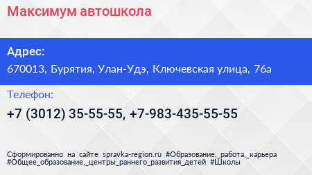 Максимум, автошкола по адресу 670013, Бурятия, Улан-Удэ, Ключевская улица, 76а в дальнейшем Организация, размещена в следующих категориях: