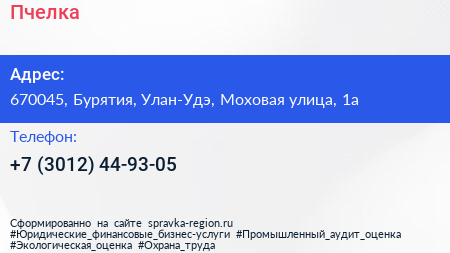 Пчелка по адресу 670045, Бурятия, Улан-Удэ, Моховая улица, 1а в дальнейшем Организация, размещена в следующих категориях: