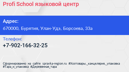 Profi School, языковой центр по адресу 670000, Бурятия, Улан-Удэ, Борсоева, 33а в дальнейшем Организация, размещена в следующих категориях:
