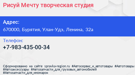 Рисуй Мечту, творческая студия по адресу 670000, Бурятия, Улан-Удэ, Ленина, 32а в дальнейшем Организация, размещена в следующих категориях: